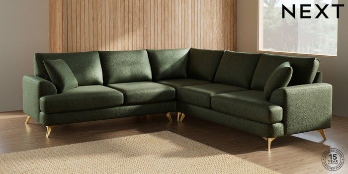 7.2.10 Parker Medium Corner Sofa - Universal Boucle Chenille Dark Moss Green High Metal - Brass | Made Click here to use our website with more accessibility support, for example screen readers