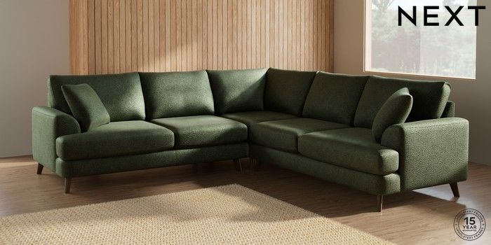 7.2.10 Parker Medium Corner Sofa - Universal Boucle Chenille Dark Moss Green Low Retro Tapered - Mid | Made Click here to use our website with more accessibility support, for example screen readers