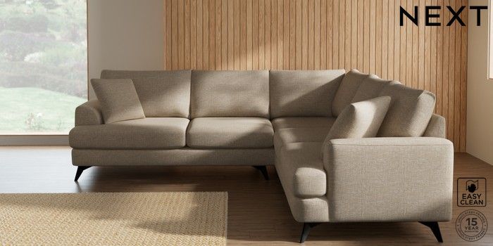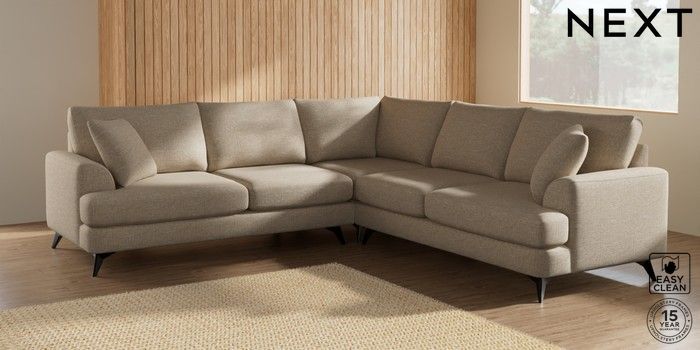 7.2.10 Parker Medium Corner Sofa - Universal Boucle Weave Easy Clean Dark Natural High Metal - Black | Made Click here to use our website with more accessibility support, for example screen readers