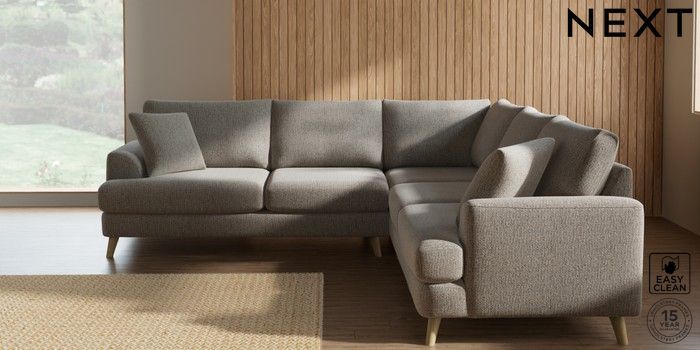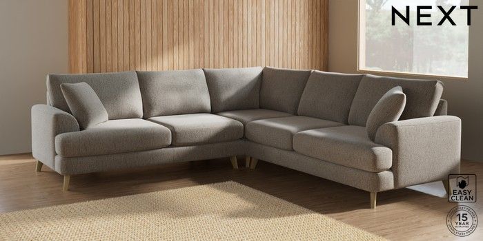 7.2.10 Parker Medium Corner Sofa - Universal Chunky Boucle Easy Clean Dove Low Retro Tapered - Light | Made Click here to use our website with more accessibility support, for example screen readers