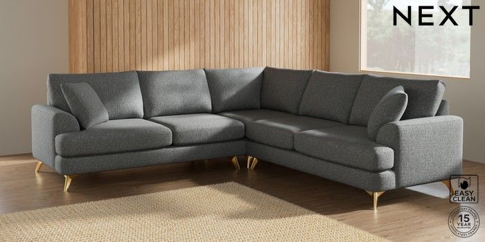 7.2.10 Parker Medium Corner Sofa - Universal Chunky Boucle Easy Clean Mid Grey High Metal - Brass | Made Click here to use our website with more accessibility support, for example screen readers