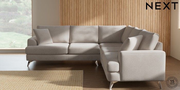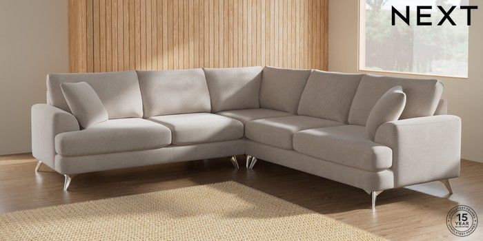 7.2.10 Parker Medium Corner Sofa - Universal Chunky Chenille Oyster High Metal - Chrome | Made Click here to use our website with more accessibility support, for example screen readers