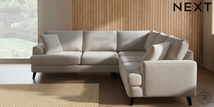 7.2.10 Parker Medium Corner Sofa - Universal Chunky Marl Oyster Low Retro Tapered - Dark | Made Click here to use our website with more accessibility support, for example screen readers