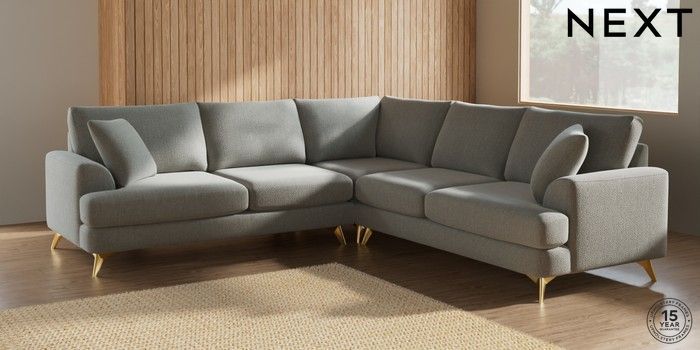 7.2.10 Parker Medium Corner Sofa - Universal Chunky Texture Dove High Metal - Brass | Made Click here to use our website with more accessibility support, for example screen readers
