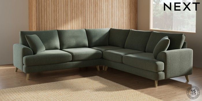 7.2.10 Parker Medium Corner Sofa - Universal Chunky Texture Mid Forest Green Low Retro Tapered - Light | Made Click here to use our website with more accessibility support, for example screen readers