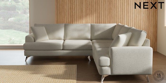 7.2.10 Parker Medium Corner Sofa - Universal Chunky Texture Oyster High Metal - Chrome | Made Click here to use our website with more accessibility support, for example screen readers