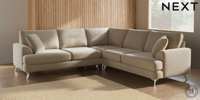 7.2.10 Parker Medium Corner Sofa - Universal Chunky Weave Cream High Metal - Chrome | Made Click here to use our website with more accessibility support, for example screen readers