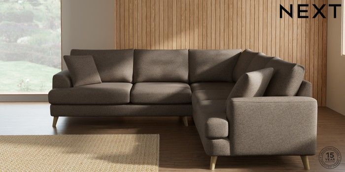 7.2.10 Parker Medium Corner Sofa - Universal Chunky Weave Dark Natural Low Retro Tapered - Light | Made Click here to use our website with more accessibility support, for example screen readers
