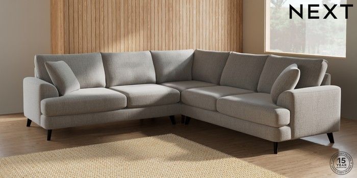 7.2.10 Parker Medium Corner Sofa - Universal Chunky Weave Dove Grey Low Retro Tapered - Dark | Made Click here to use our website with more accessibility support, for example screen readers