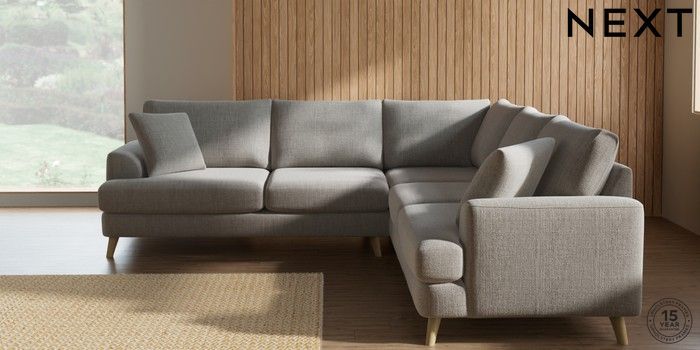 7.2.10 Parker Medium Corner Sofa - Universal Chunky Weave Dove Grey Low Retro Tapered - Light | Made Click here to use our website with more accessibility support, for example screen readers