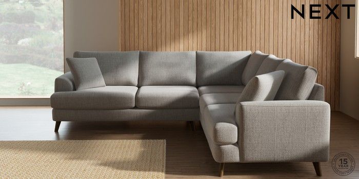 7.2.10 Parker Medium Corner Sofa - Universal Chunky Weave Dove Grey Low Retro Tapered - Mid | Made Click here to use our website with more accessibility support, for example screen readers