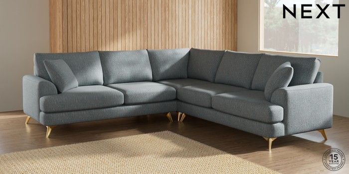 7.2.10 Parker Medium Corner Sofa - Universal Chunky Weave Mid Blue High Metal - Brass | Made Click here to use our website with more accessibility support, for example screen readers