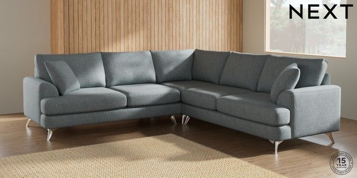 7.2.10 Parker Medium Corner Sofa - Universal Chunky Weave Mid Blue High Metal - Chrome | Made Click here to use our website with more accessibility support, for example screen readers