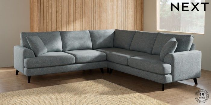 7.2.10 Parker Medium Corner Sofa - Universal Chunky Weave Mid Blue Low Retro Tapered - Dark | Made Click here to use our website with more accessibility support, for example screen readers