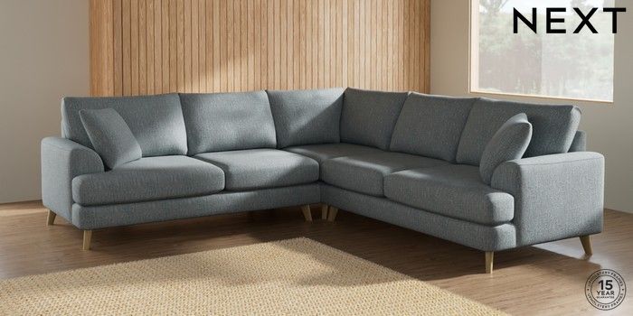 7.2.10 Parker Medium Corner Sofa - Universal Chunky Weave Mid Blue Low Retro Tapered - Light | Made Click here to use our website with more accessibility support, for example screen readers