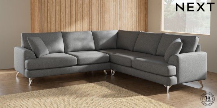 7.2.10 Parker Medium Corner Sofa - Universal Chunky Weave Mid Grey High Metal - Chrome | Made Click here to use our website with more accessibility support, for example screen readers