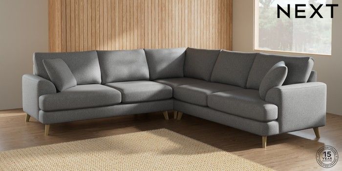 7.2.10 Parker Medium Corner Sofa - Universal Chunky Weave Mid Grey Low Retro Tapered - Light | Made Click here to use our website with more accessibility support, for example screen readers