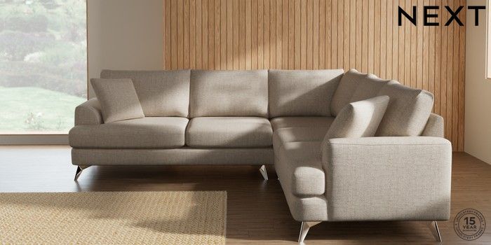 7.2.10 Parker Medium Corner Sofa - Universal Chunky Weave Mid Natural High Metal - Chrome | Made Click here to use our website with more accessibility support, for example screen readers