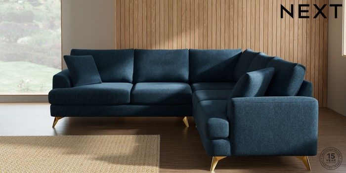 7.2.10 Parker Medium Corner Sofa - Universal Cotswold Chenille Dark Blue High Metal - Brass | Made Click here to use our website with more accessibility support, for example screen readers