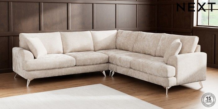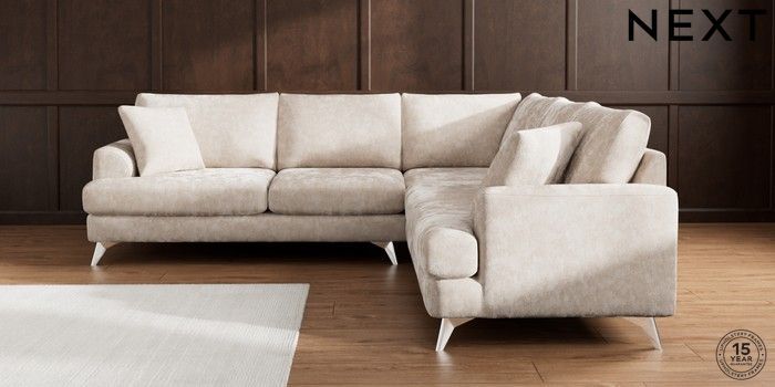7.2.10 Parker Medium Corner Sofa - Universal Distressed Velour Mid Natural High Metal - Chrome | Made Click here to use our website with more accessibility support, for example screen readers