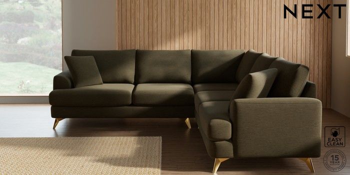 7.2.10 Parker Medium Corner Sofa - Universal Fine Chenille Easy Clean Dark Moss Green High Metal - Brass | Made Click here to use our website with more accessibility support, for example screen readers