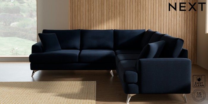 7.2.10 Parker Medium Corner Sofa - Universal Fine Chenille Easy Clean Dark Navy Blue High Metal - Chrome | Made Click here to use our website with more accessibility support, for example screen readers