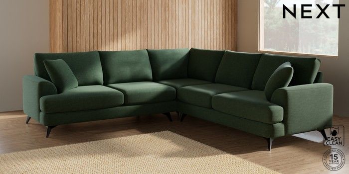7.2.10 Parker Medium Corner Sofa - Universal Fine Chenille Easy Clean Mid Khaki Green High Metal - Black | Made Click here to use our website with more accessibility support, for example screen readers