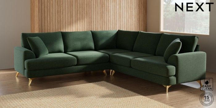 7.2.10 Parker Medium Corner Sofa - Universal Fine Chenille Easy Clean Mid Khaki Green High Metal - Brass | Made Click here to use our website with more accessibility support, for example screen readers