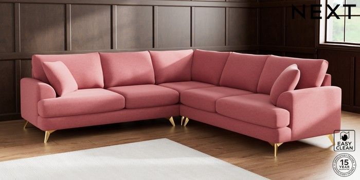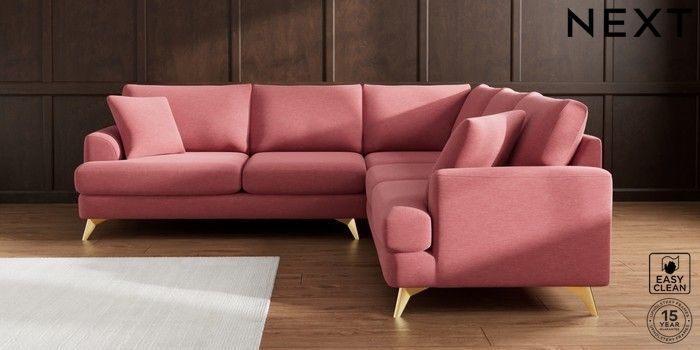 7.2.10 Parker Medium Corner Sofa - Universal Fine Chenille Easy Clean Mid Pink High Metal - Brass | Made Click here to use our website with more accessibility support, for example screen readers