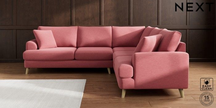 7.2.10 Parker Medium Corner Sofa - Universal Fine Chenille Easy Clean Mid Pink Low Retro Tapered - Light | Made Click here to use our website with more accessibility support, for example screen readers