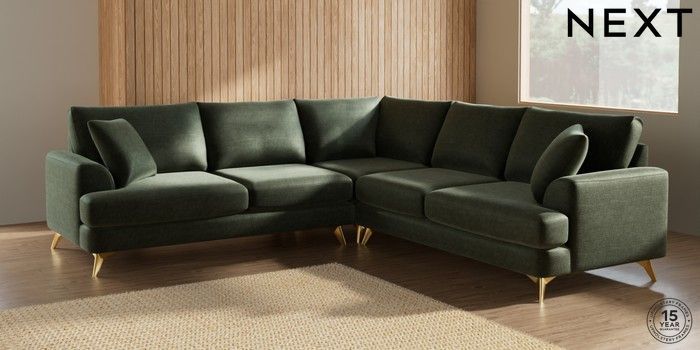 7.2.10 Parker Medium Corner Sofa - Universal Luxe Chenille Mid Green High Metal - Brass | Made Click here to use our website with more accessibility support, for example screen readers
