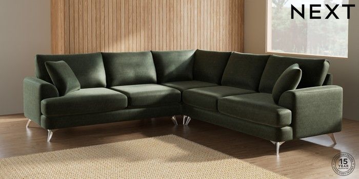 7.2.10 Parker Medium Corner Sofa - Universal Luxe Chenille Mid Green High Metal - Chrome | Made Click here to use our website with more accessibility support, for example screen readers