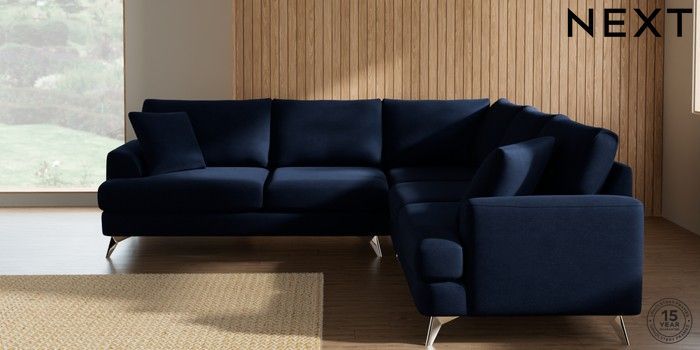 7.2.10 Parker Medium Corner Sofa - Universal Luxe Chenille Navy Blue High Metal - Chrome | Made Click here to use our website with more accessibility support, for example screen readers