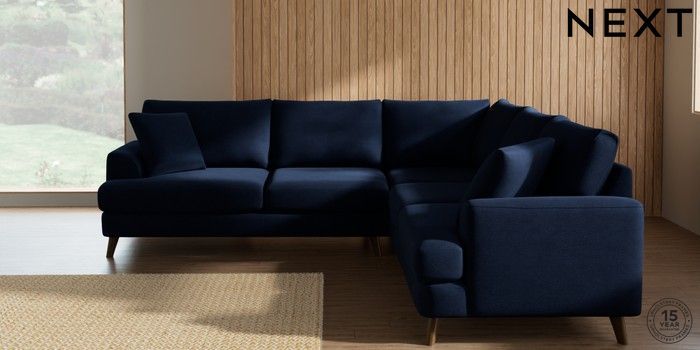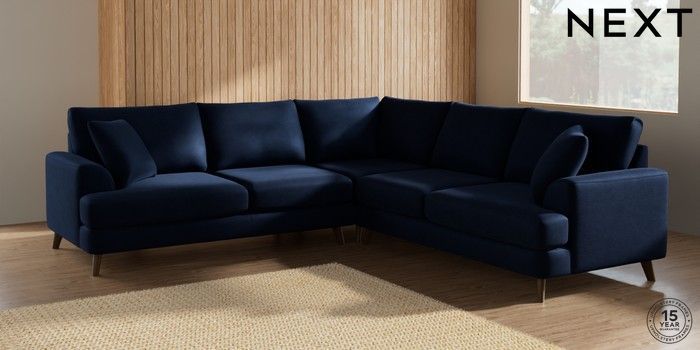 7.2.10 Parker Medium Corner Sofa - Universal Luxe Chenille Navy Blue Low Retro Tapered - Mid | Made Click here to use our website with more accessibility support, for example screen readers