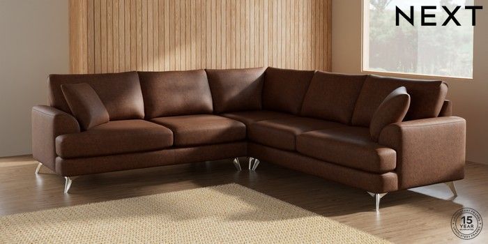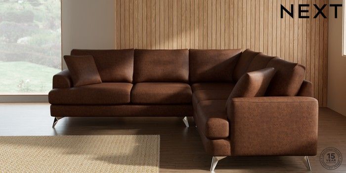 7.2.10 Parker Medium Corner Sofa - Universal Monza Faux Leather Easy Clean Chestnut Brown High Metal - Chrome | Made Click here to use our website with more accessibility support, for example screen readers