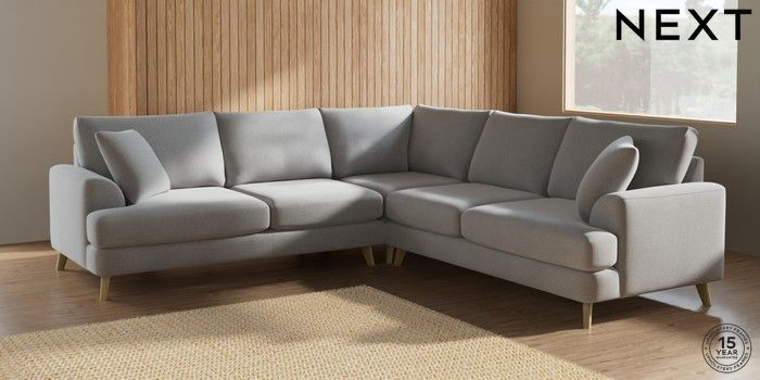 7.2.10 Parker Medium Corner Sofa - Universal Natural Mix Light Grey Low Retro Tapered - Light | Made Click here to use our website with more accessibility support, for example screen readers