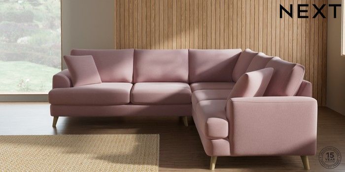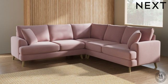 7.2.10 Parker Medium Corner Sofa - Universal Natural Mix Light Rose Pink Low Retro Tapered - Light | Made Click here to use our website with more accessibility support, for example screen readers
