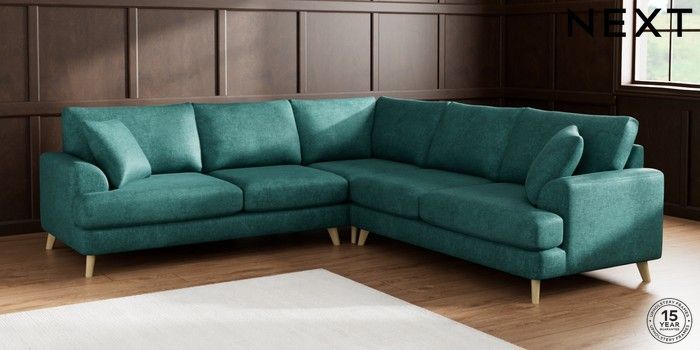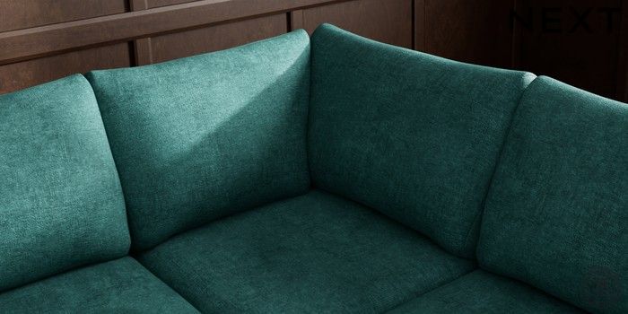 7.2.10 Parker Medium Corner Sofa - Universal Plush Chenille Dark Teal Green Low Retro Tapered - Light | Made Click here to use our website with more accessibility support, for example screen readers