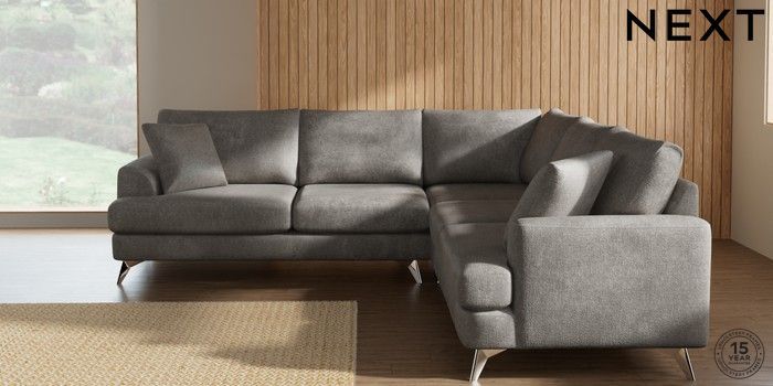 7.2.10 Parker Medium Corner Sofa - Universal Plush Chenille Light Grey High Metal - Chrome | Made Click here to use our website with more accessibility support, for example screen readers