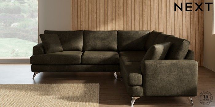 7.2.10 Parker Medium Corner Sofa - Universal Plush Chenille Moss Green High Metal - Chrome | Made Click here to use our website with more accessibility support, for example screen readers