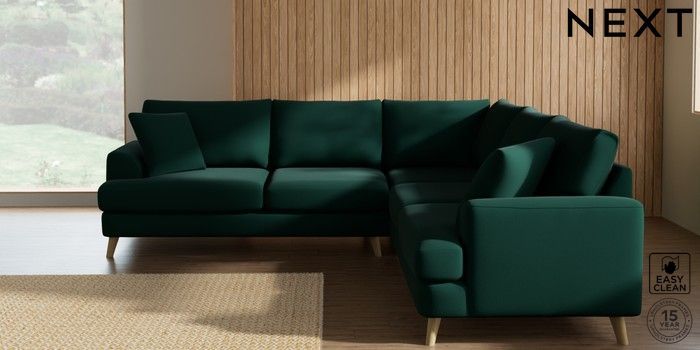 7.2.10 Parker Medium Corner Sofa - Universal Plush Velvet Easy Clean Bottle Green Low Retro Tapered - Light | Made Click here to use our website with more accessibility support, for example screen readers