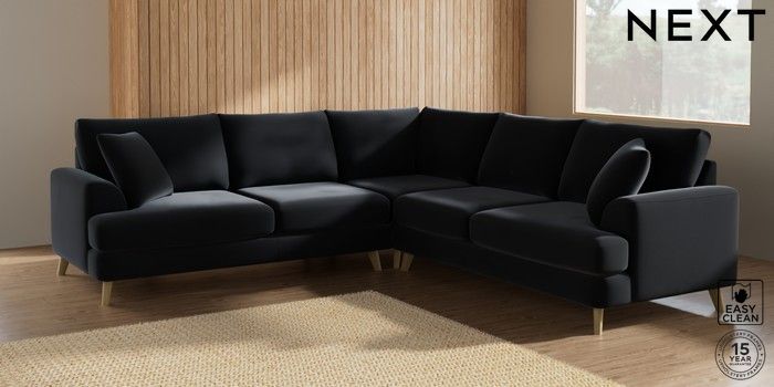 7.2.10 Parker Medium Corner Sofa - Universal Plush Velvet Easy Clean Charcoal Grey Low Retro Tapered - Light | Made Click here to use our website with more accessibility support, for example screen readers