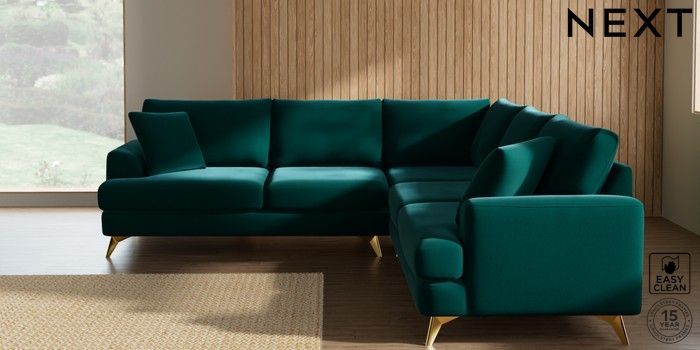 7.2.10 Parker Medium Corner Sofa - Universal Plush Velvet Easy Clean Juniper Green High Metal - Brass | Made Click here to use our website with more accessibility support, for example screen readers
