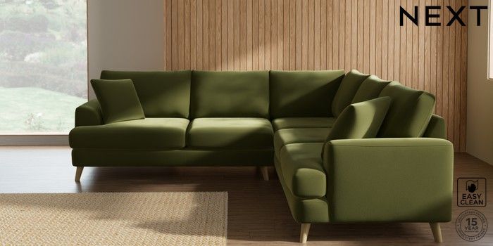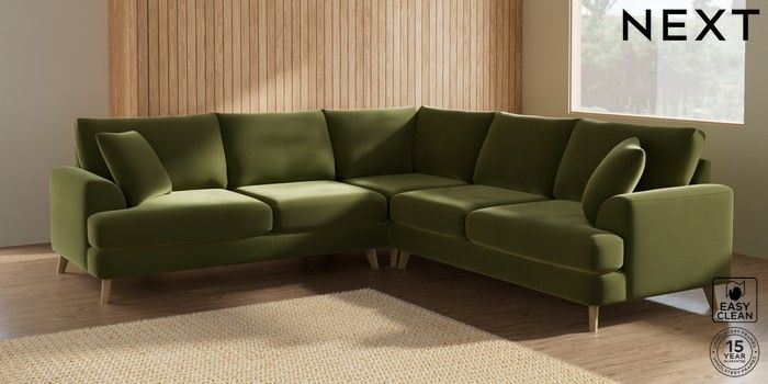 7.2.10 Parker Medium Corner Sofa - Universal Plush Velvet Easy Clean Mid Olive Green Low Retro Tapered - Light | Made Click here to use our website with more accessibility support, for example screen readers