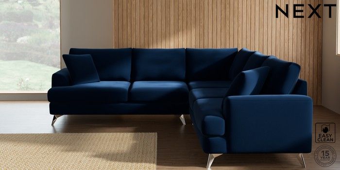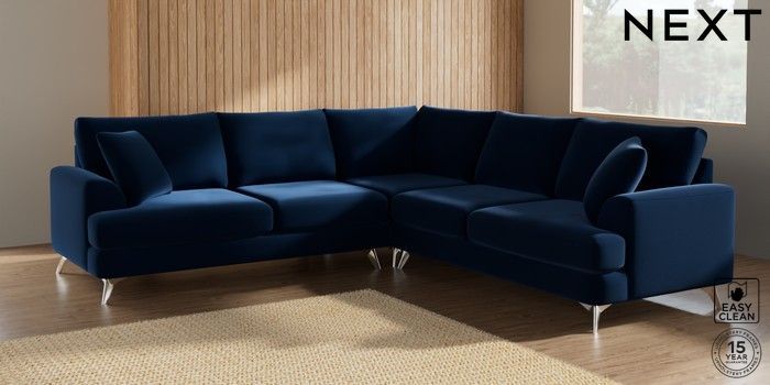 7.2.10 Parker Medium Corner Sofa - Universal Plush Velvet Easy Clean Navy Blue High Metal - Chrome | Made Click here to use our website with more accessibility support, for example screen readers