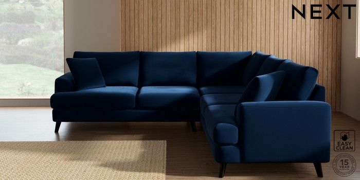 7.2.10 Parker Medium Corner Sofa - Universal Plush Velvet Easy Clean Navy Blue Low Retro Tapered - Dark | Made Click here to use our website with more accessibility support, for example screen readers