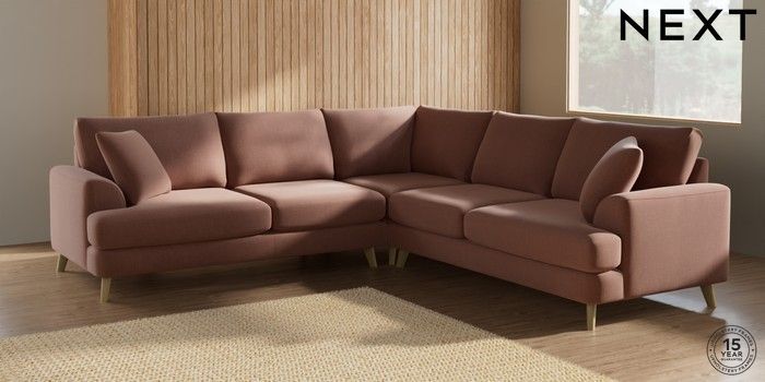 7.2.10 Parker Medium Corner Sofa - Universal Relaxed Linen Look Light Rust Brown Low Retro Tapered - Light | Made Click here to use our website with more accessibility support, for example screen readers