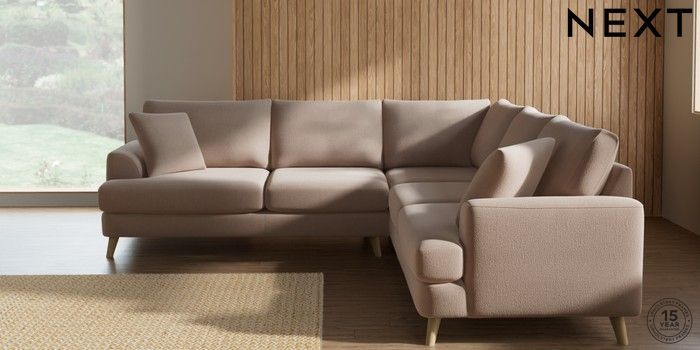 7.2.10 Parker Medium Corner Sofa - Universal Relaxed Linen Look Mid Natural Low Retro Tapered - Light | Made Click here to use our website with more accessibility support, for example screen readers