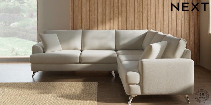 7.2.10 Parker Medium Corner Sofa - Universal Relaxed Linen Look Oyster High Metal - Chrome | Made Click here to use our website with more accessibility support, for example screen readers