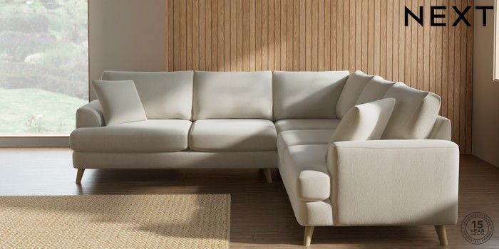 7.2.10 Parker Medium Corner Sofa - Universal Relaxed Linen Look Oyster Low Retro Tapered - Light | Made Click here to use our website with more accessibility support, for example screen readers